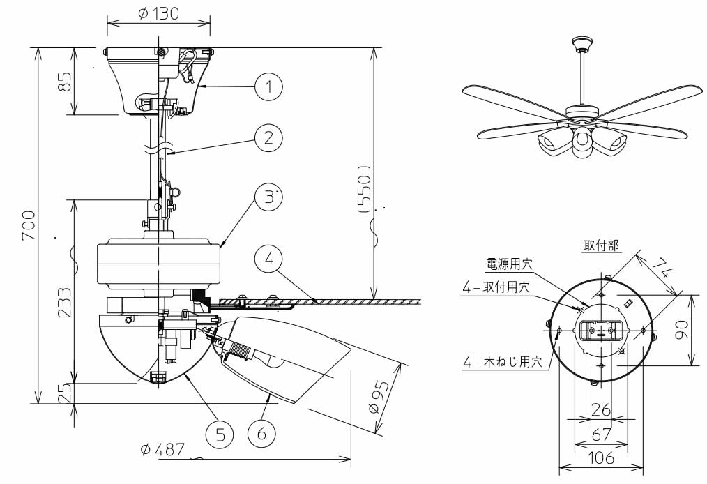 但し、シーリングファンはボリュームのある器具ですので、6畳の広さでは少々圧迫感がある場合もございます。6畳位の広さにしか使えないということではありません。