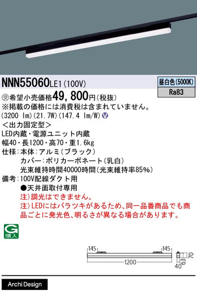 パナソニック 一体型配線ダクト用LEDベースライト sBシリーズ 低光束タイプ NNN55063LE1[電球色][ブラック]