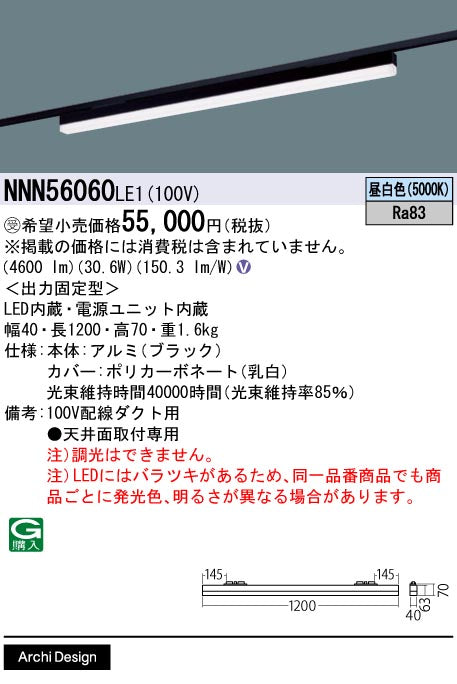 ◆注)受注製造品に付き、納期がかかる場合があります。 ◆器具光束:4600 lm ◆安定器出力型:定格出力型 ◆安定器補足:<出力固定型> ◆電圧:100 V |
