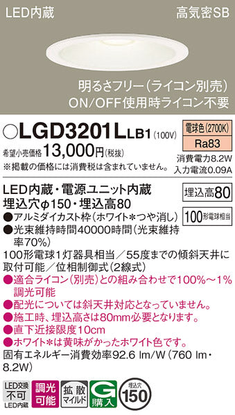 浅型8H(埋込高80)、天井フトコロの浅い場合にぴったりの浅型設計ダウンライト